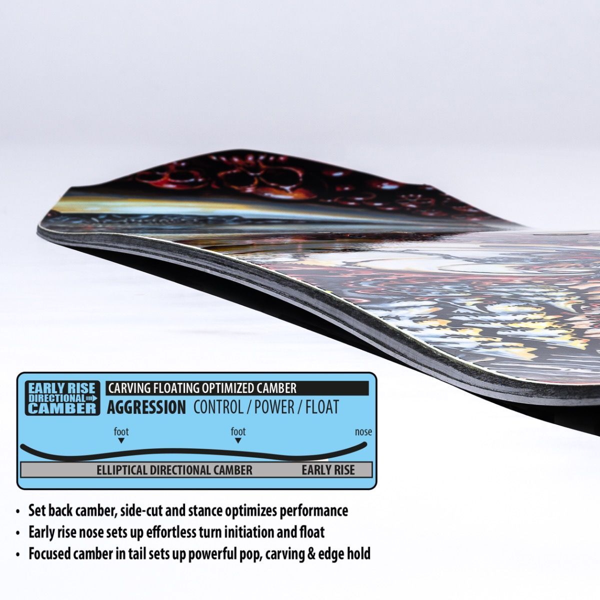 - DIRECTIONAL ELLIPTICAL CARVING SIDECUT SYNCED WITH A SET BACK POWER CAMBER