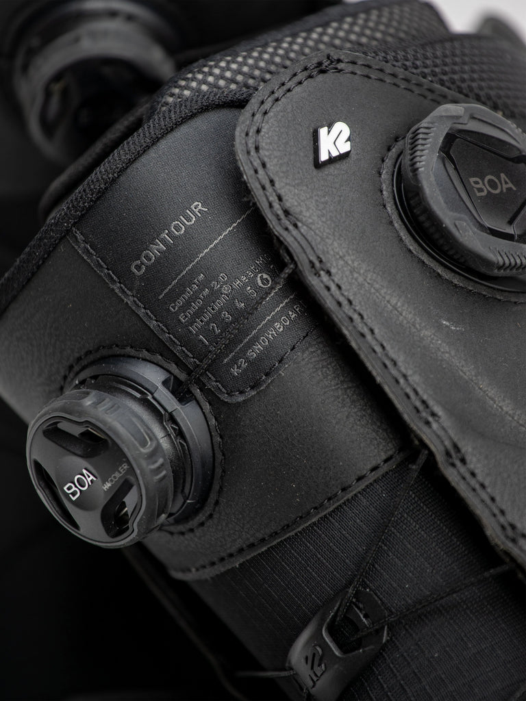 The secret to the award-winning fit is our Conda™ liner lacing system. Powered by a BOA® Fit System dial, this forgiving and adjustable harness is designed to pull the user's heel into the boot's heel pocket. This urethane-based harness hugs your ankle and flexes naturally. Externally, we started with an articulating cuff to reduce distortion when bending the knee, and we've integrated our Flex Zone calf panel at the top of the cuff, helping to keep legs happy all day long. A high-powered BOA® Fit System H4 Coiler closes the shell securely and can be done without removing your gloves. Lastly, to add durability and maintain the boot's flex over the boot's lifetime, we constructed the K2 Contour using our Endo™ technology.