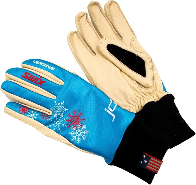 Celebrate US Gold with the Swix Women's JD Gold Pro trainer. With an insulated upper, all-natural leather palm, and an articulated thumb with gusset for flexibility, this glove provides unbeatable warmth and breathability. Lycra finger walls and terry wipe inserts add convenience, while an extended Lycra cuff makes it easy to wear with poles.