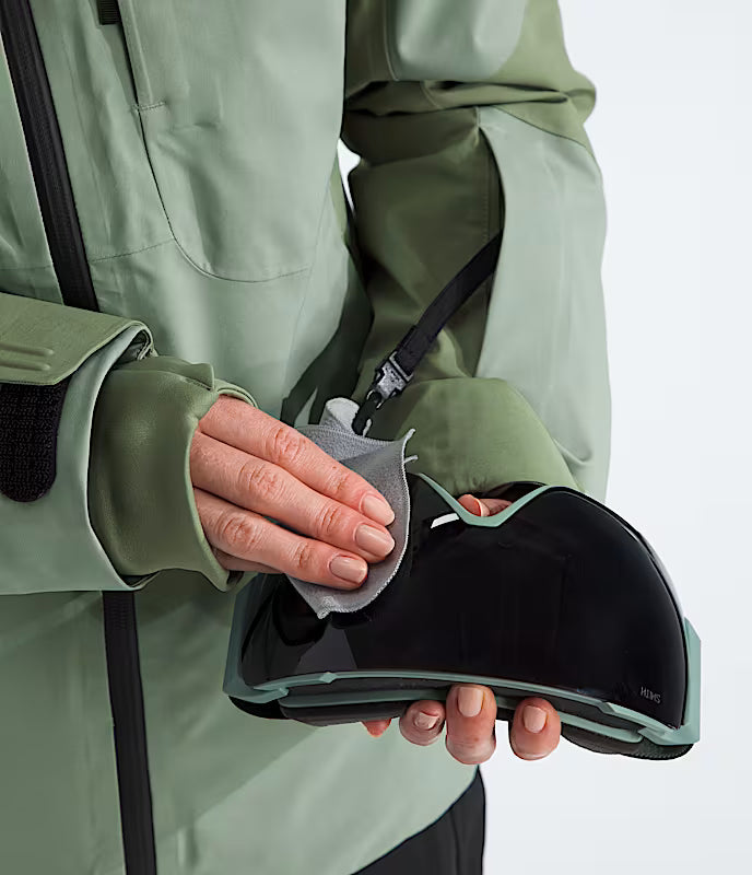 • Covered, secure-zip wrist pocket with a goggle wipe