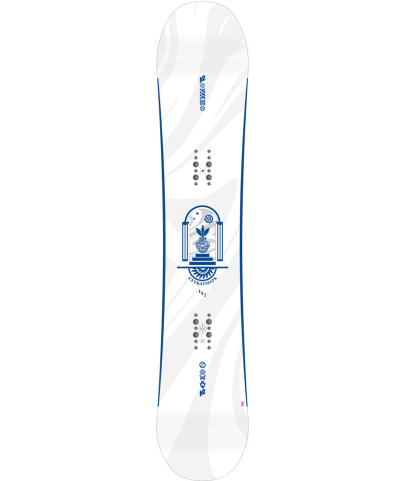 The all new K2 Extravision Snowboard Snowboard is ideal for intermediate to advanced riders seeking maximum all terrain versatility. A women's specific Rhythm core combines with K2's Directional Combination Camber Profile for smooth all mountain performance, with a carbon reinforced laminate for added stability and edge-hold when you need it most.